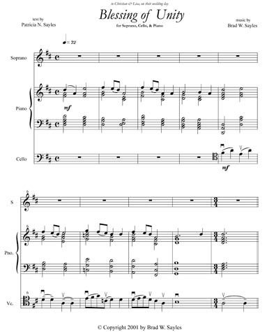 Blessing of Unity composed May 1997 Scored for soprano, cello, & piano 5 minutes Score and parts available. |