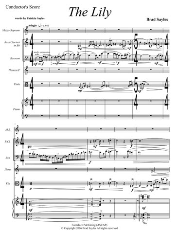 THE LILY reflects suffering the loss of a loved one and the grief and pain that comes with it. I asked my wife to compose a poem on this specific theme, with my only direction being the line “The lily smells of death.”From that small germ of an idea, she composed a beautiful yet haunting set of lines that not only fit the bill for this piece but became the cornerstone for its entire structure.